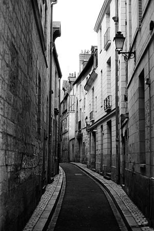 A laneway in Tours, France. Photographed on Kodak black and white film.